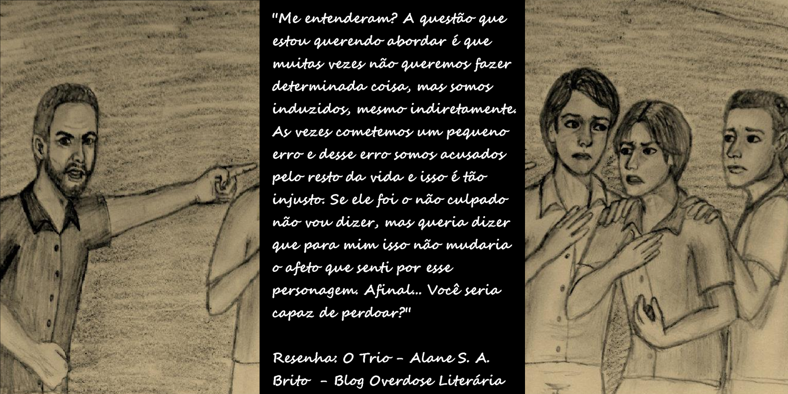 Já tinha ouvido muitos elogios para essa obra e agora posso confirmar todos. Sorri,chorei, me emocionei e aprendi. Todos os sentimentos envolvidos e todas as situações nas quais a amizade dos meninos foi colocada a prova me fez refletir sobre a palavra amizade e sobre tudo que uma pessoa pode passar e sofrer. Sendo que se souber que não está sozinho, que seus amigos, são de verdade que essa amizade é tão verdadeira que nem a vida pode separar. Sobre pactos, amores e amizades. Davi, Nelson e Jordan dão uma bela lição. Perdão...Desprezo, dor, fé e o verdadeiro ato de conhecer realmente uma pessoa! Você conhece de verdade aqueles que diz amar? O Trio pode realmente mostrar algo para você que não será capaz de esquecer!